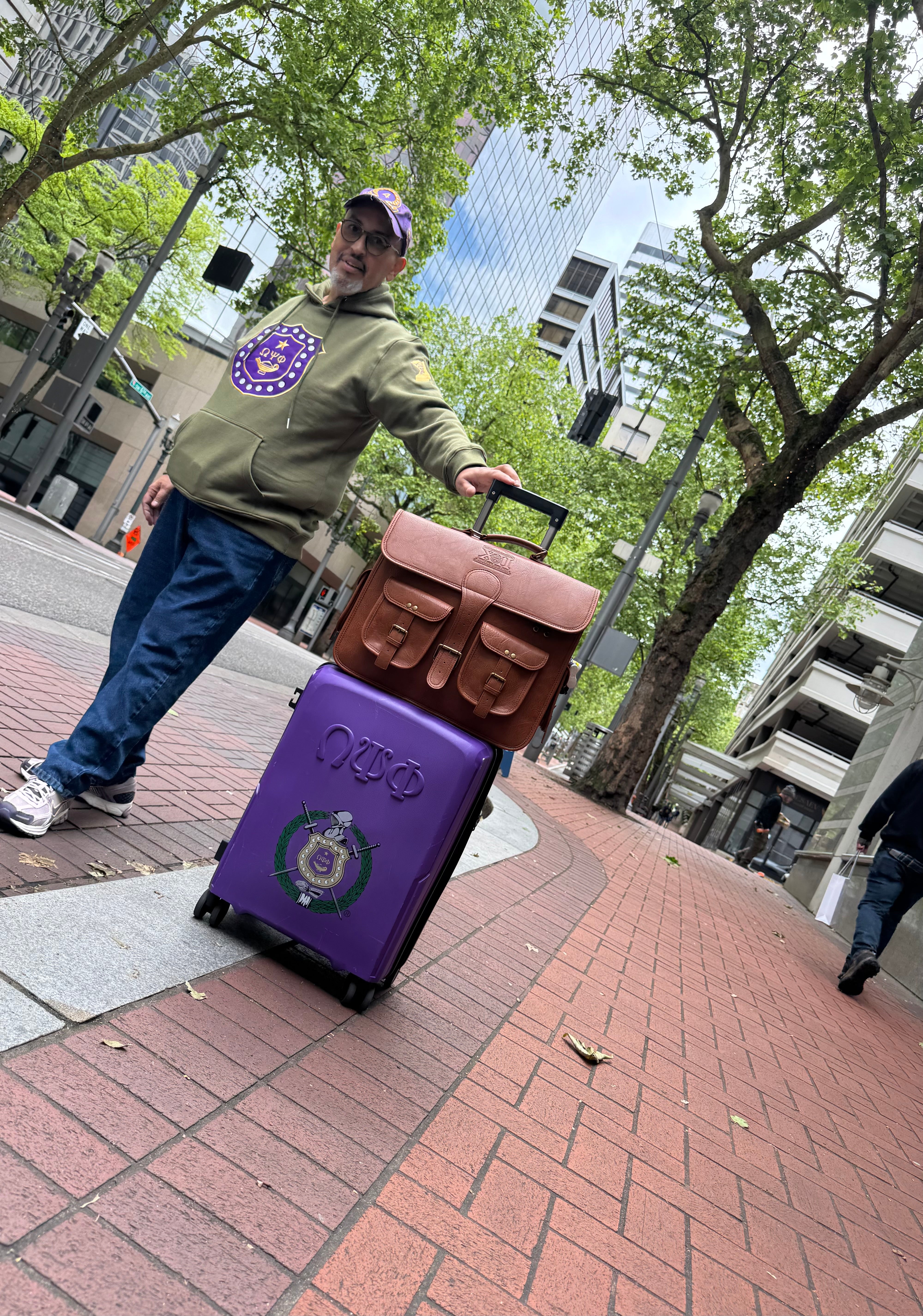 Show your fraternity pride wherever you go with the Omega Psi Phi Carry-On Luggage. Designed for the traveling Que, this durable hardshell suitcase features the bold Omega Psi Phi crest, smooth 360° spinner wheels, and a TSA-approved lock for hassle-free security. Compact yet spacious, it’s perfect for weekend getaways or business trips. Represent the brotherhood—in style.